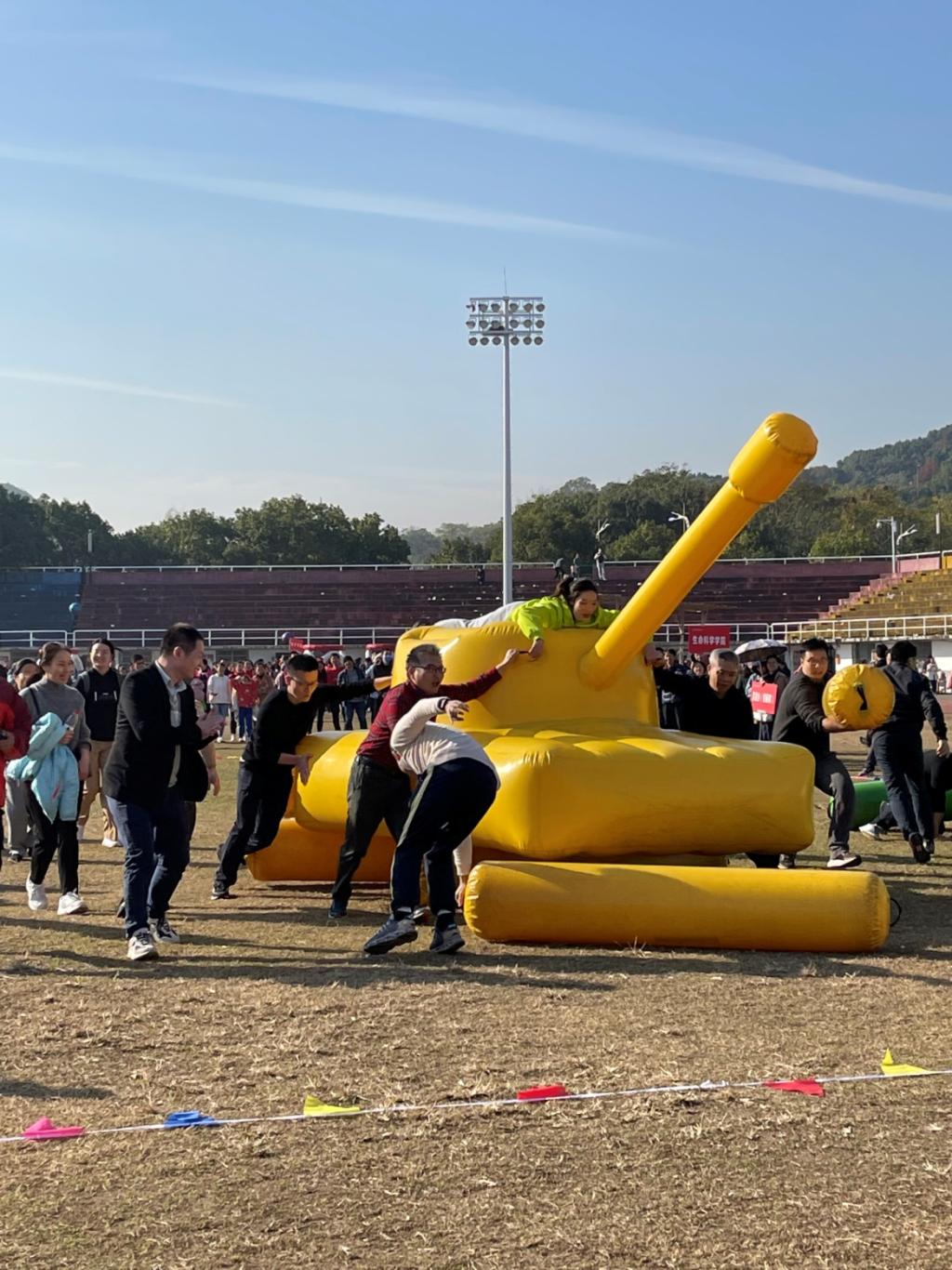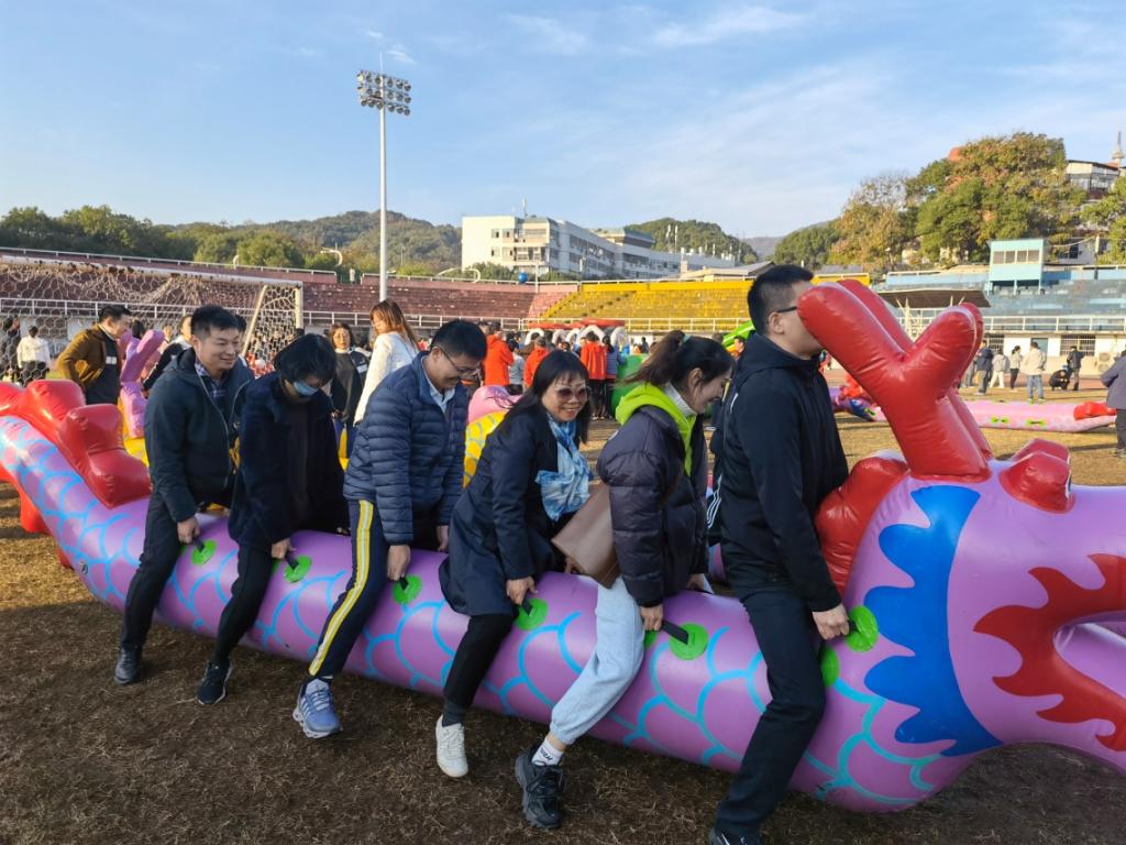 本次趣味运动会分为“龙行天下、铁甲战车、趣味投篮和智勇闯关”四个团体项目。冬日里的暖阳瞬间点燃了教职工的热情,田径场上运动员全身心投入,你追我赶,竞争激烈,场边教职工们相谈甚欢,气氛热烈,加油呐喊声响切云霄。