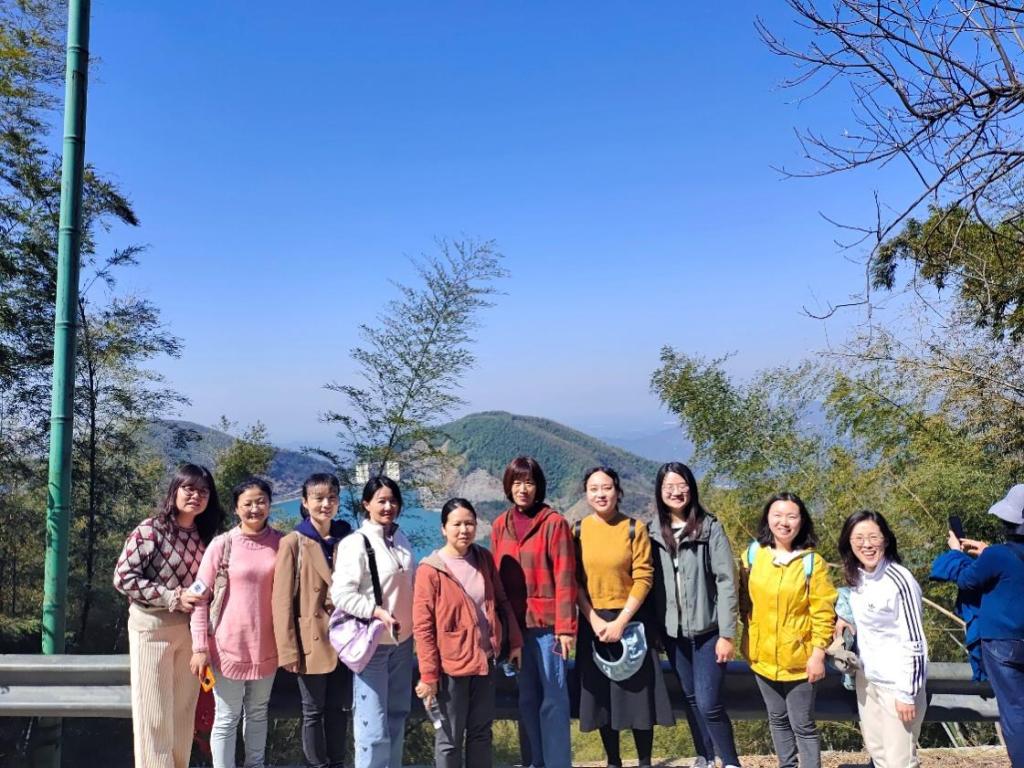 上午8点30分,全体女教职工在学院门口集合,学院领导及教职工为女教师送上节日祝福并合影留念。党委书记谭东波、工会主席余丽萍以及全体女教职工一同乘车前往黑麋峰国家森林公园。