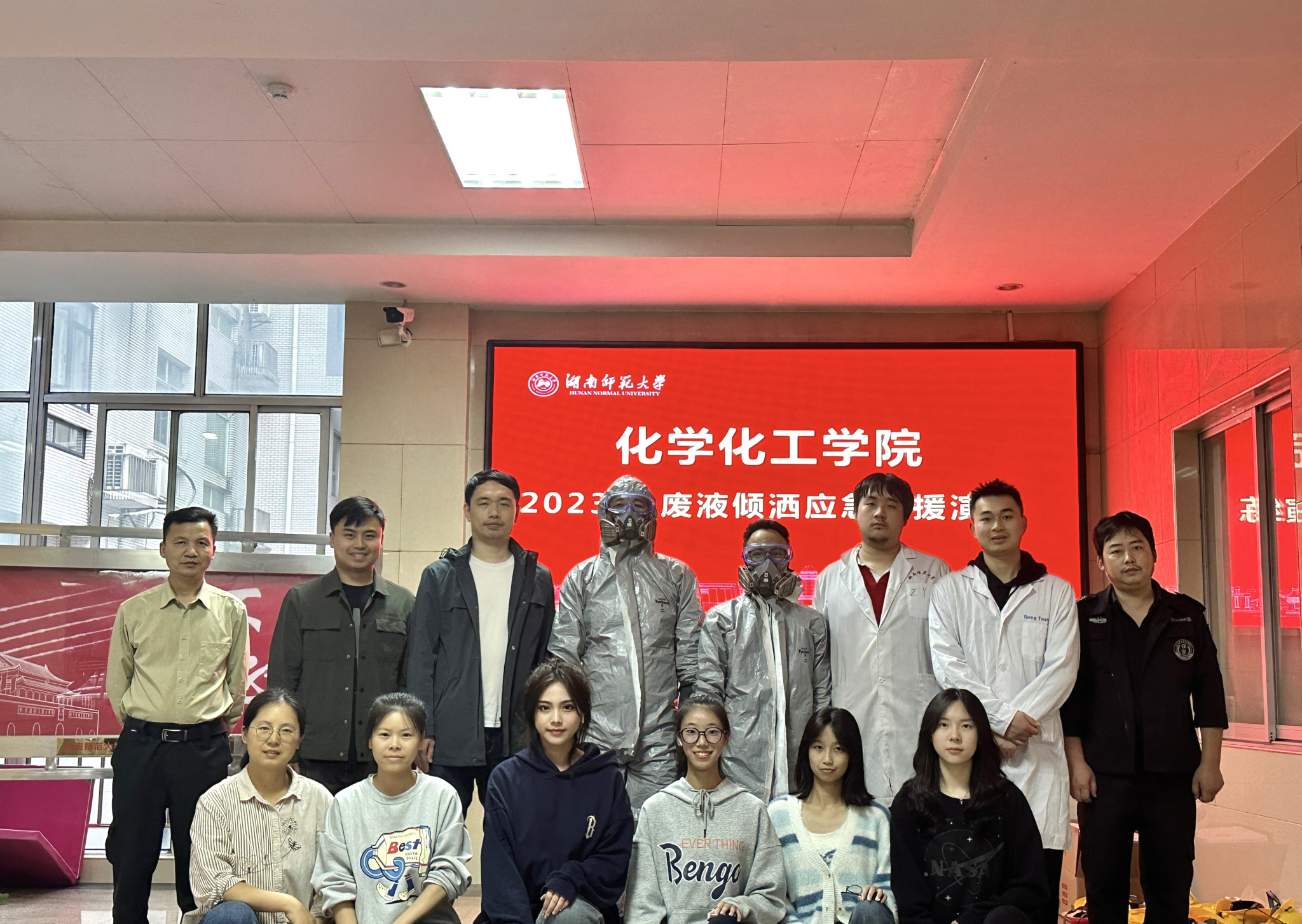 为响应2023年国家安全生产月 “人人讲安全,个个会应急”主题,贯彻校资实处关于2023年“安全活动月“工作要求,同时锻炼和检验402永利集团师生关于实验室安全事故应急处置能力,10月26日下午,402永利集团开展2023年废液倾洒紧急处置演练,副院长宋春红担任总指挥,教育部重点实验室专职副主任周子虬主持。