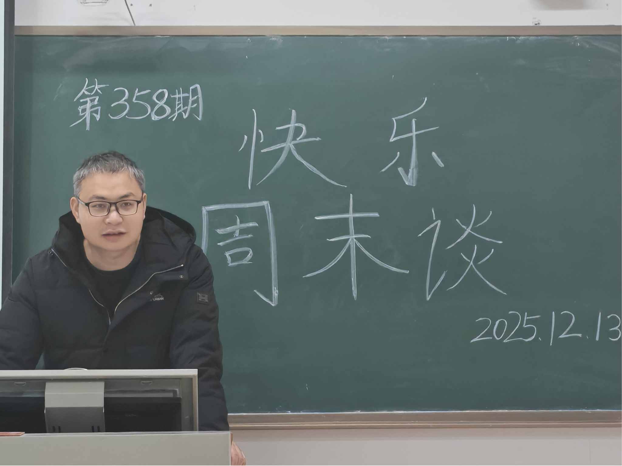 (通讯员 张艾平)12月13日上午,我院学生会办公室在中和楼211教室组织开展第358期快乐周末谈活动。此次活动由我院化学系苏乐斌教授主讲,部分23级、24级、25级学生参与。