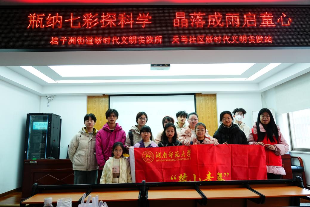 (通讯员 蔡欣宇 刘浩宁)为激发青少年对科学的兴趣,普及化学知识,3月7日上午,我院2405班在湖南省长沙市岳麓区天马社区开展了以“瓶纳七彩,晶落成雨”为主题的趣味化学科普志愿活动。