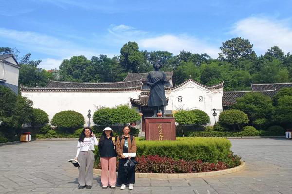 活动伊始,实践团成员参观何宝珍故里,深入了解何宝珍的革命事迹及景点建设情况。为纪念革命烈士何宝珍,道县人民先后修复了何宝珍故居、纪念馆、铜像广场,何宝珍故居与道县革命烈士纪念园等红色建筑及荷花池和生态水果采摘园共同形成人文荟萃、风景秀美的何宝珍故居景区。红色文化与绿色生态的有机结合吸引了各地游客前来参观。但仍存在纪念馆空间狭窄、文件数量较少、陈列形式单一、革命英雄事迹影响范围较小等问题。对此,当地政府应当继续深入挖掘英雄革命事迹,加大宣传力度,讲好革命先辈故事,探索红色文化传播道路。
