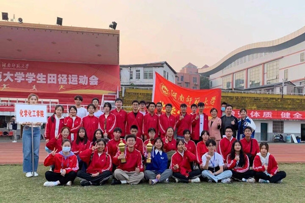 赛场上,运动员们秉持着“友谊第一,比赛第二”的竞赛精神,在赛场上挥洒汗水,奋力拼搏。最终,化工院代表队获得男子团体第三名和男女团体第五名的成绩。闭幕式结束后,罗艳、屈杜炜和谢云霞同运动员们一起合影留念。