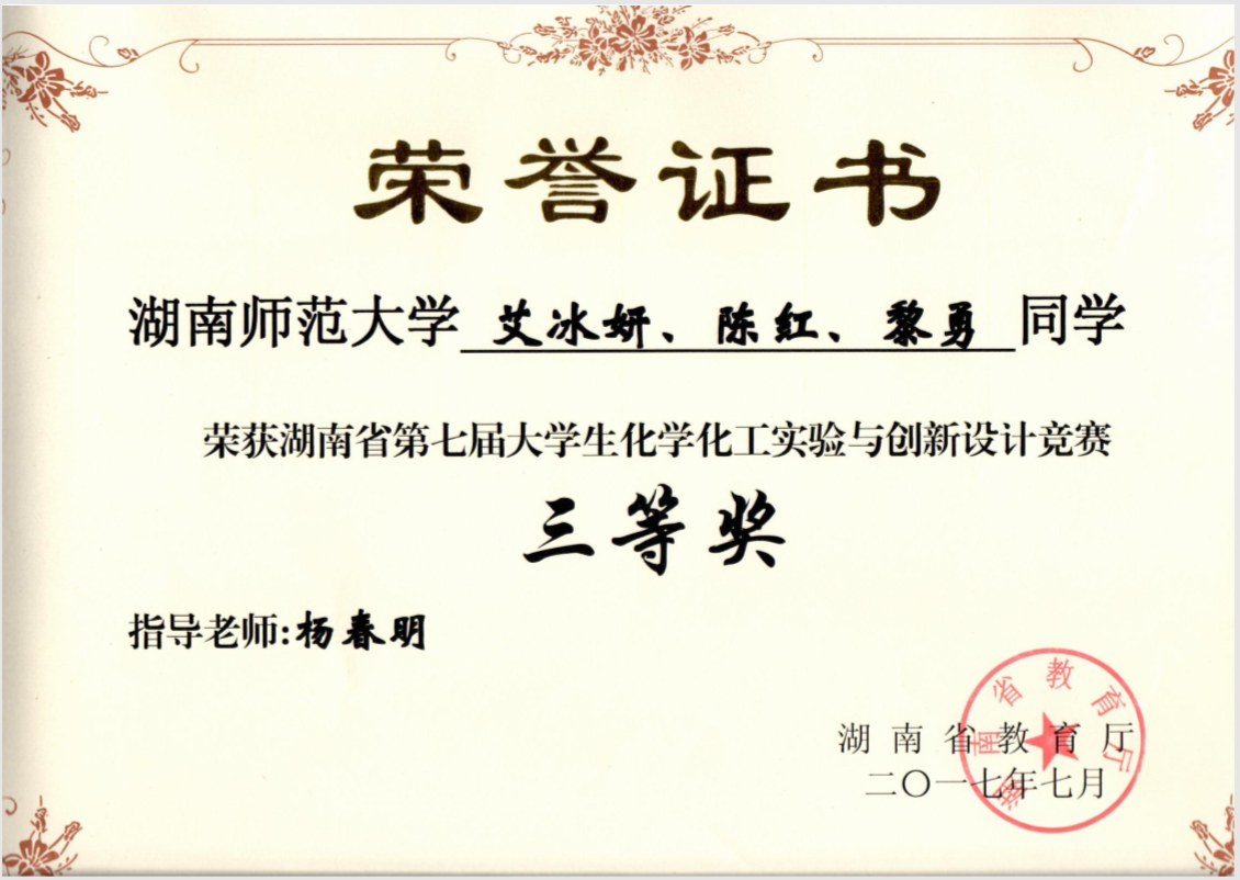 下一条:我院尹笃林教授课题组和杨春明教授课题组分别喜获湖南省高等教育省级教学成果奖二等奖和三等奖