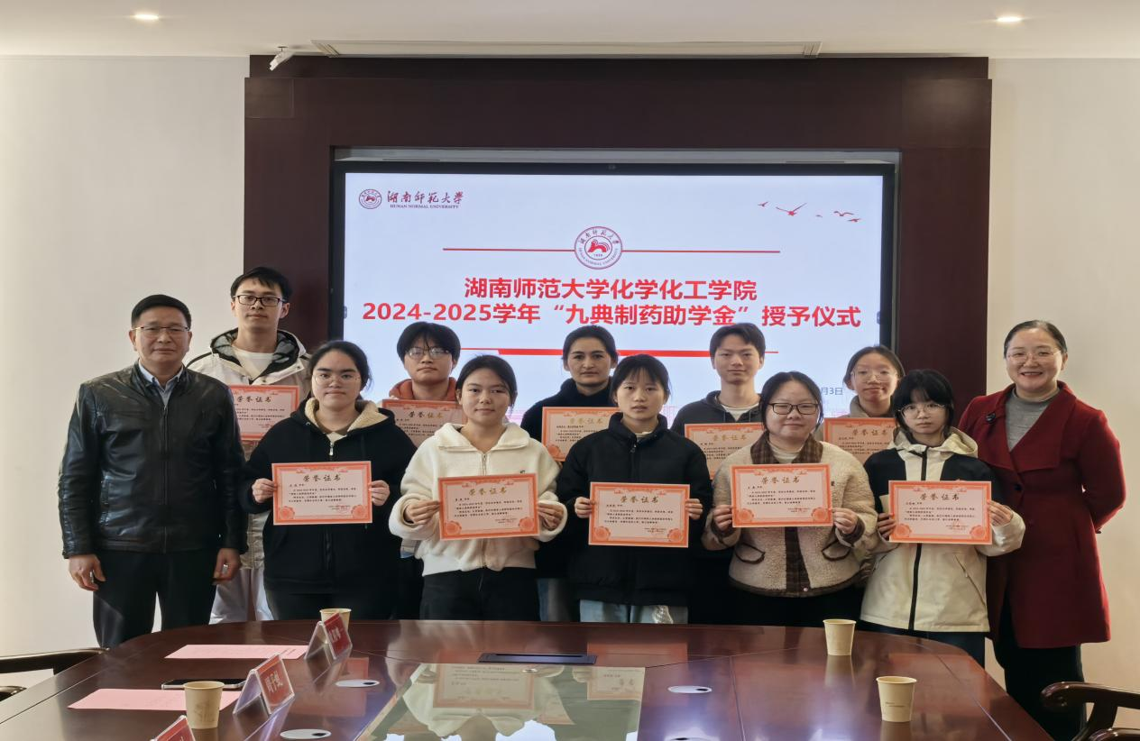 (通讯员 谭伟维)12月3日上午,我院在化学楼206会议室举行2024-2025学年度“九典制药助学金”授予仪式。仪式由副院长宋春红主持。九典制药人力资源总监杨洁、人才发展主管张叶,院党委书记谭东波、副书记周子虬、学工办主任欧阳唯一、资助专干朱伟鹏出席,全体获助学生参加。
