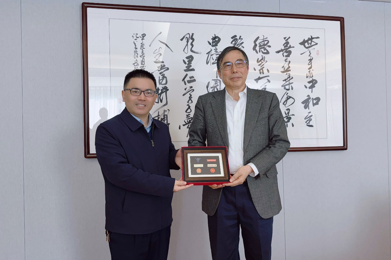 郑贤章向卿凤翎院士赠送母校不同历史时期校徽套装纪念盒