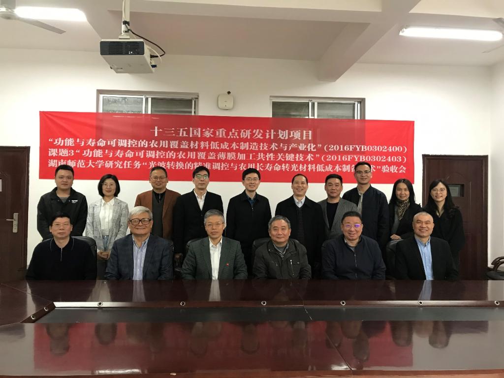 4月25日,十三五国家重点研发计划项目“功能与寿命可调控的农用覆盖材料低成本制造技术与产业化”(2016FYB0302400)402永利集团研究任务“光波转换的精准调控与农用长寿命转光材料低成本制备技术”顺利通过专家组验收。