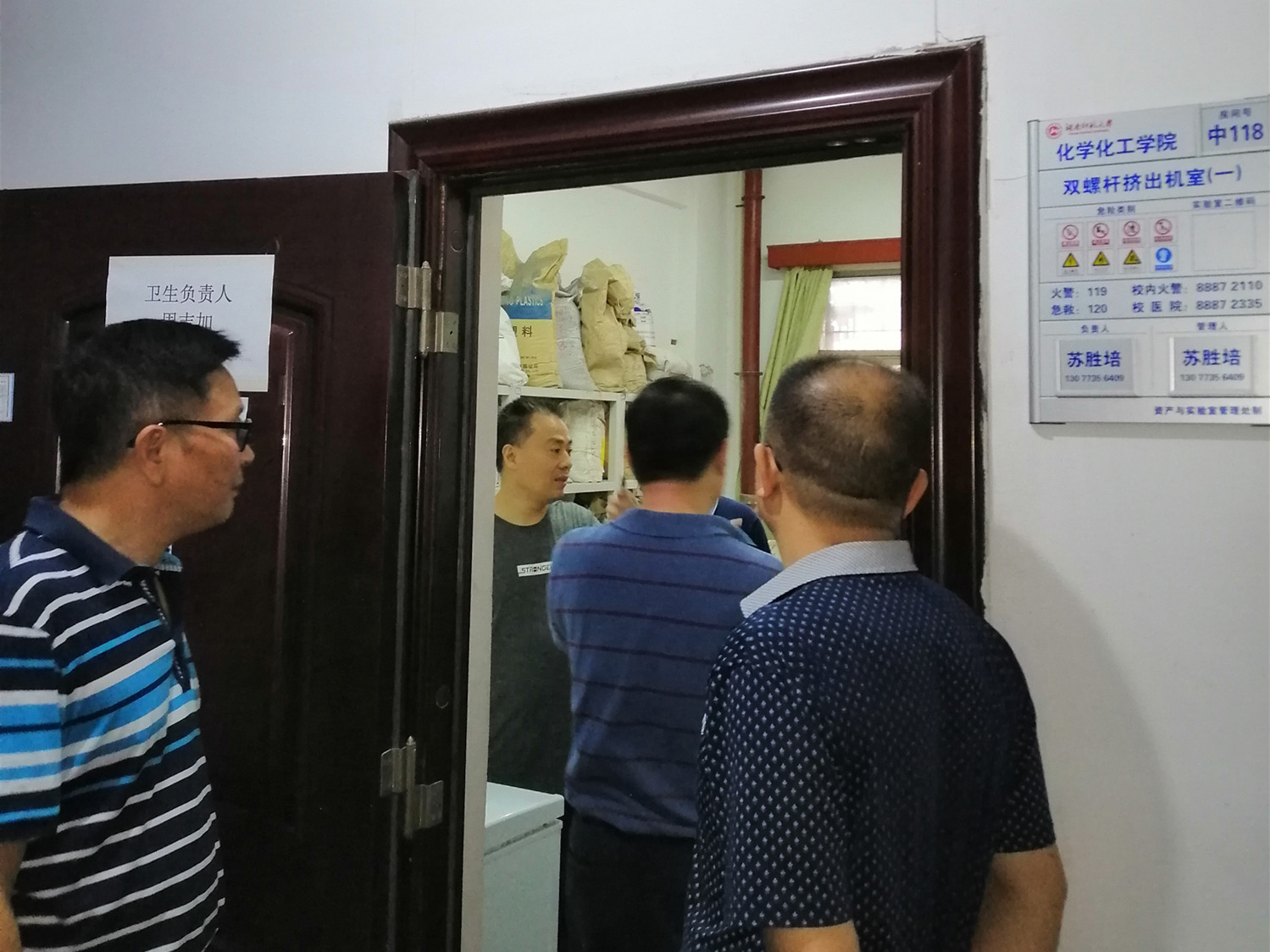 9月6日上午,由校资产与实验室管理处、科技处、教务处、保卫处组成的检查组对我院危化品安全管理工作进行了专项检查,院党委书记于风江,副院长谭东波、谭亮等陪同检查。