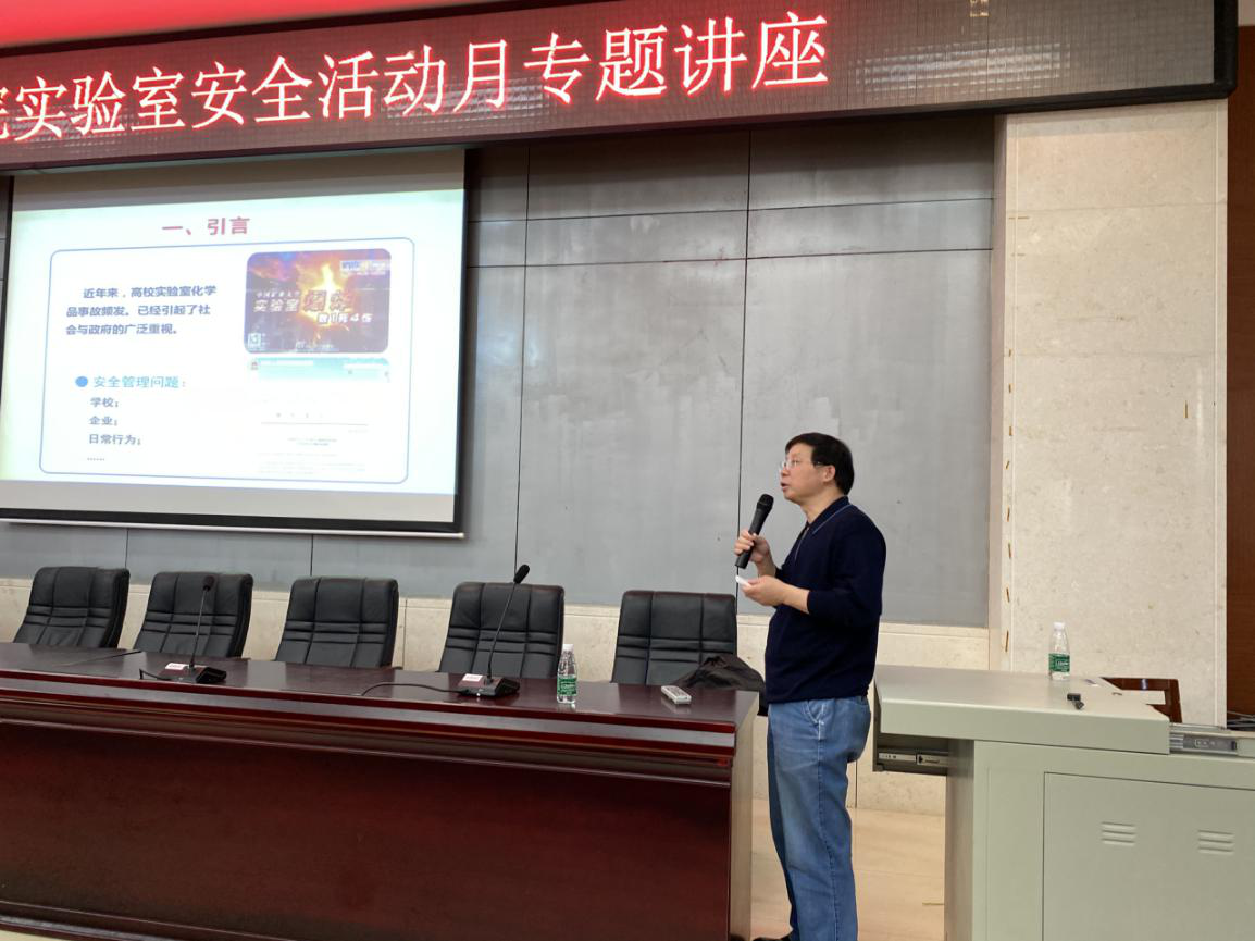 郭栋才通过阐述安全事故案例引入主题,从为什么要重视实验室安全、如何做好实验室安全管理、怎样排查危险化学品安全风险隐患以及建立高校实验室EHS管理体系的必要性四个方面为参会人员分享了实验室管理方法和经验。此次讲座内容详实、生动易懂,对实验室安全工作具有很强的指导性和针对性,进一步提高了师生实验室安全意识和应急能力,为我院更好地落实实验室安全管理主体责任,减少实验室安全事故的发生打下了基础。