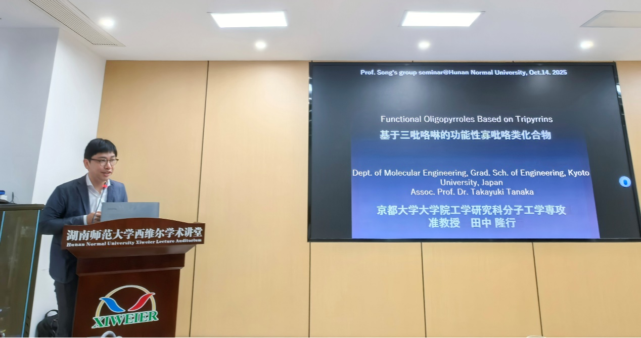 2025年10月14日上午日本京都大学Takayuki Tanaka副教授和Daiki Shimizu副教授受邀访问402永利集团,在西维尔学术讲堂分别带来题为《Functional oligopyrroles based on tripyrrins》和《Exchange-Interaction-based Design of Functional π-Conjugation Systems》的精彩学术报告。此次报告会由我院徐凌副教授主持,学院部分教师、研究生参加此次学术交流活动。