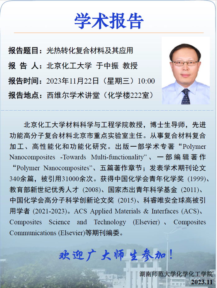 上一条:【学术报告】环三核团簇基共价金属有机框架材料的设计合成及其性能研究